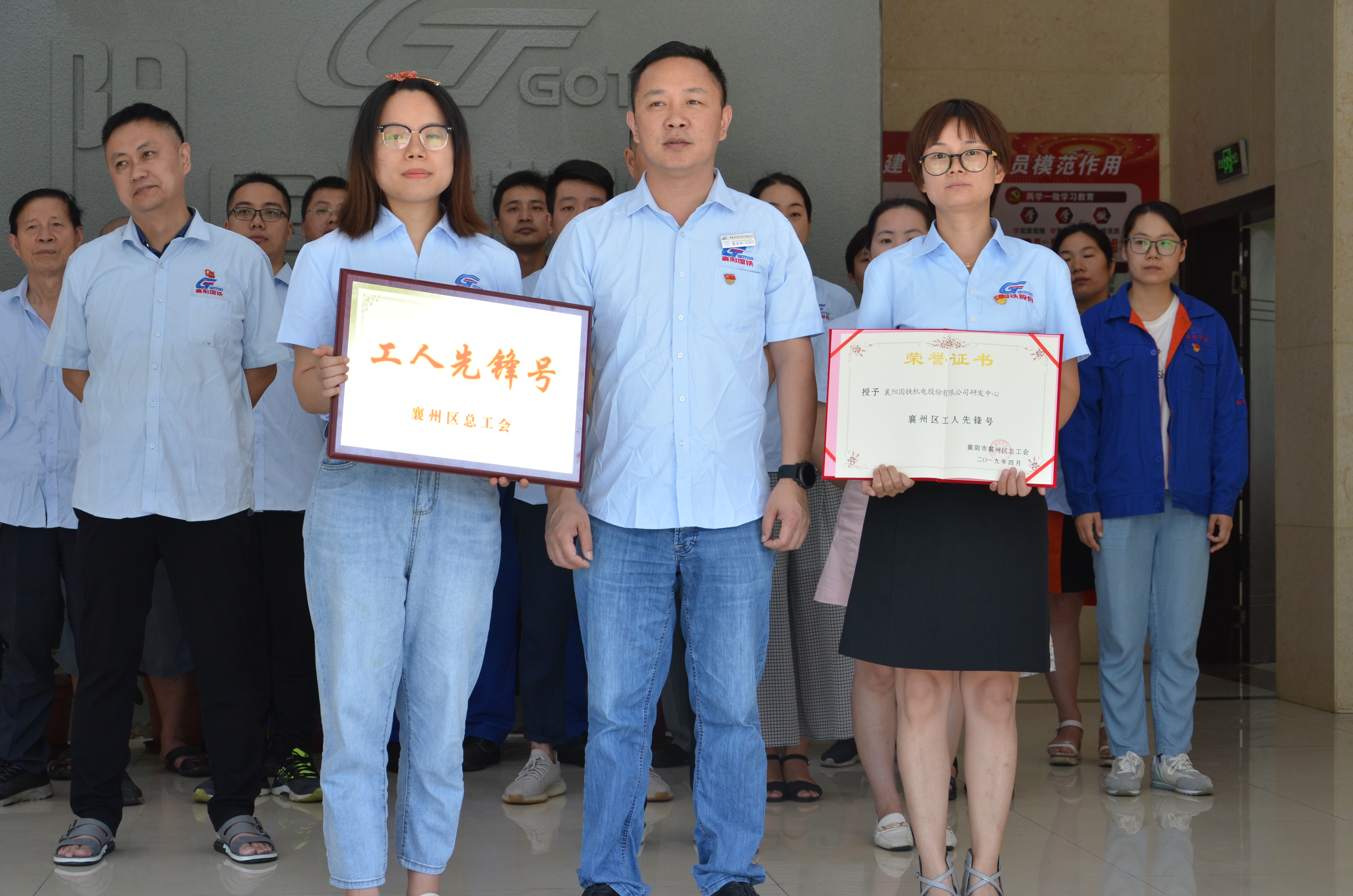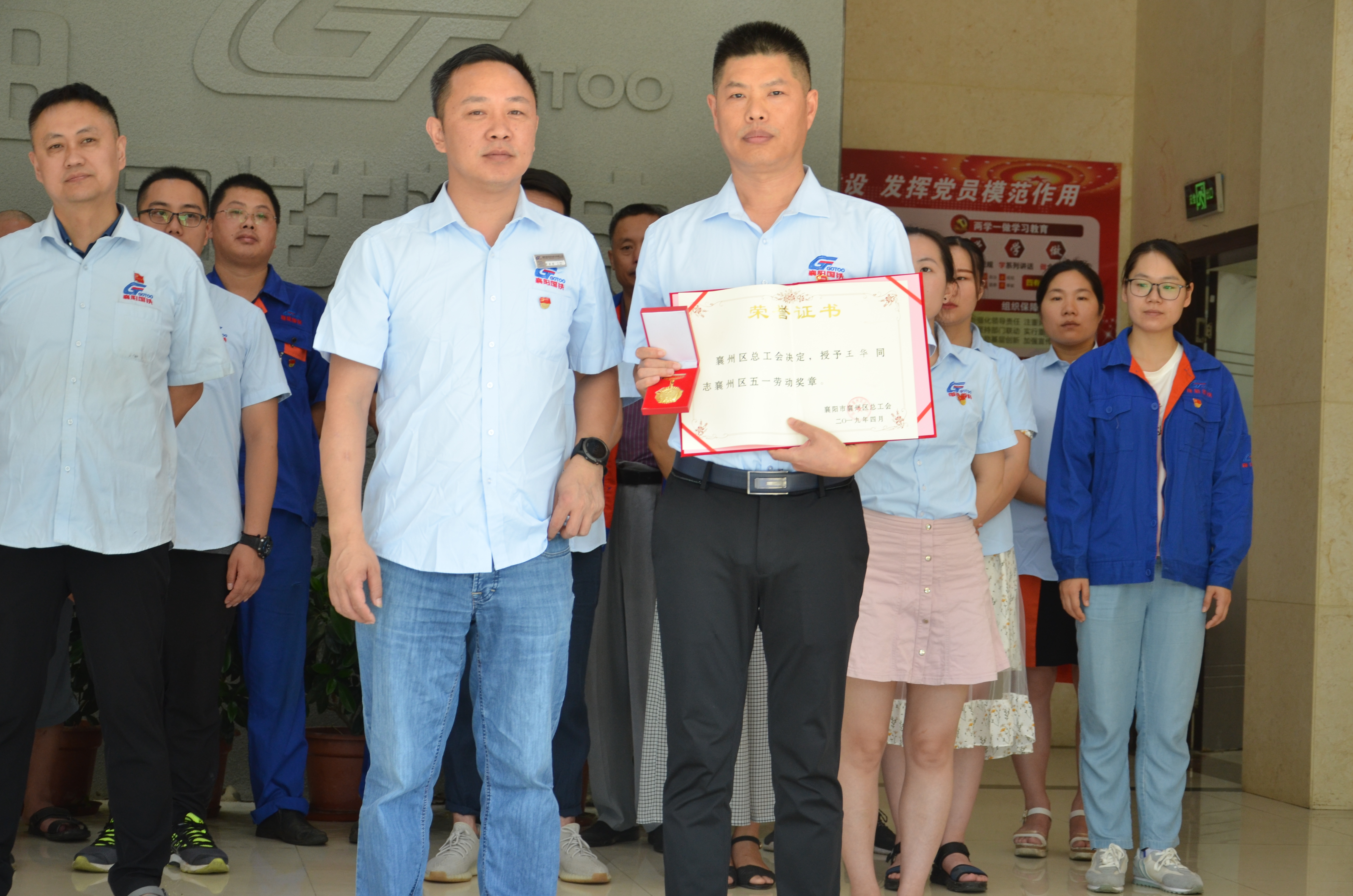 襄州區(qū)總工會(huì)決定,授予王華同志襄州區(qū)五一勞動(dòng)獎(jiǎng)?wù)隆保皇谟琛跋尻枃F機(jī)電股份有限公司研發(fā)中心襄陽工人先鋒號(hào)獎(jiǎng)?wù)?。由黨支部書記代表代表襄州區(qū)總工會(huì)授予獲獎(jiǎng)部門獎(jiǎng)?wù)?、證書、獎(jiǎng)牌。